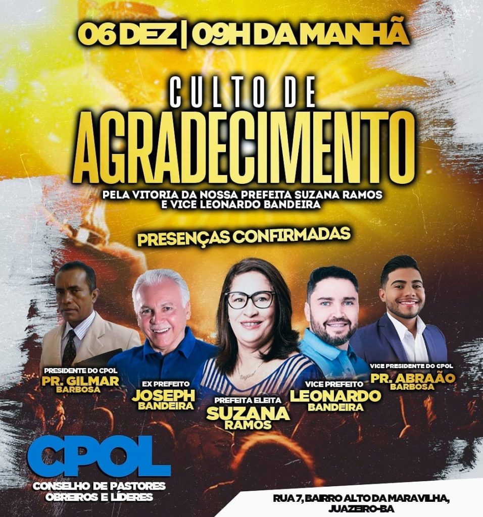 Em setembro de 2020, a então candidata a prefeita de Juazeiro (BA), Suzana Ramos, comemorava o apoio do Conselho de Pastores e Líderes evangélicos (CPOL), que segunda a própria entidade, reúne mais de 60 igrejas na cidade de Juazeiro. O pastor Abraão Loula Barbosa Da Silva, que foi candidato a vereador pelo PTC e obteve 187 votos, foi o responsável pela a entrega do documento a Suzana Ramos, que foi assinado pelas igrejas que compõem  o CPOL.