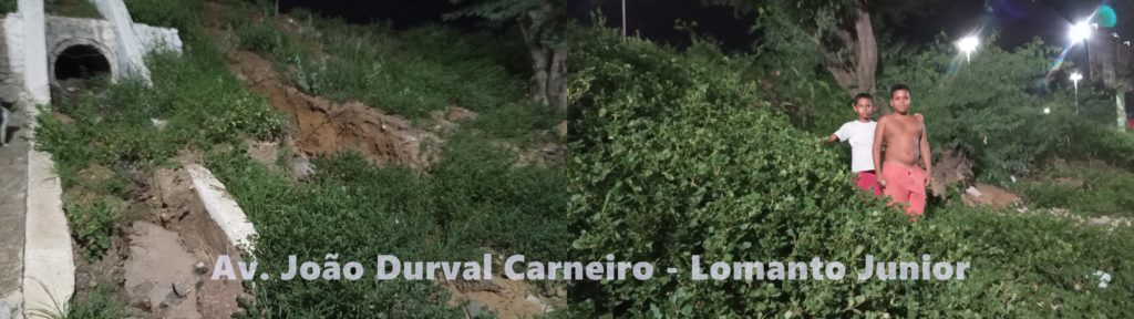 “Se chove, o asfalto da Avenida vira estrada de chão e a terra quando seca enche de poeira as nossas casas. Sem contar que as crateras estão servindo para depósito de lixo e o mato já está tomando de conta.”, reclamou indignada a moradora do bairro Lomanto.
