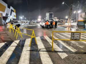 Os órgãos municipais já adotaram as providências necessárias para promover a retirada das estruturas danificadas e trabalham para restabelecer o funcionamento do sistema semafórico no menor tempo possível.